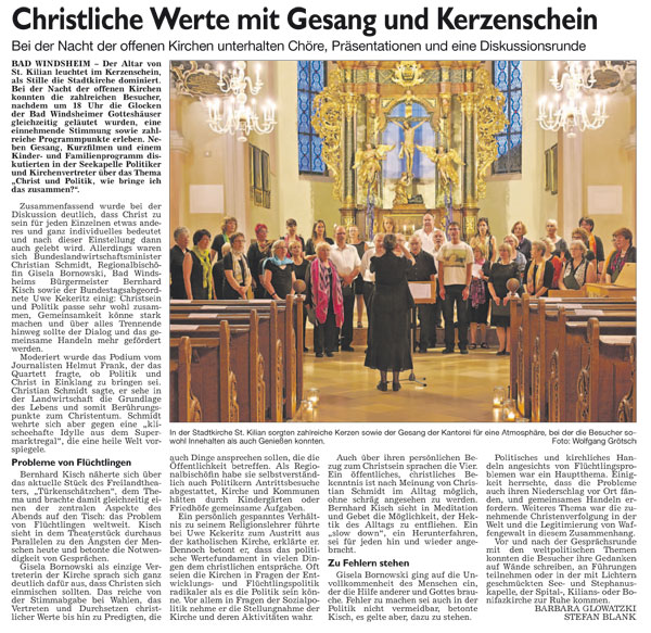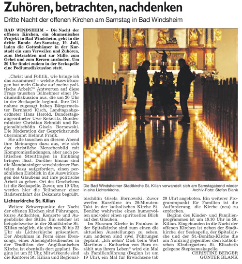 WZ 21. 7. 2014 "Christliche Werte mit Gesang und Kerzenschein", "Windsheimer Wassersparer", "Ein Sechssitzer für alle Fälle"