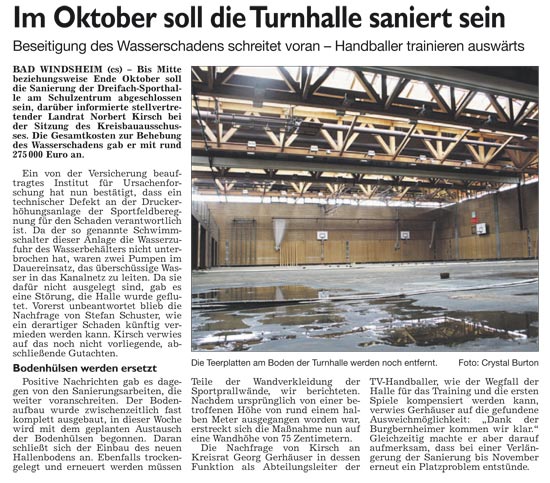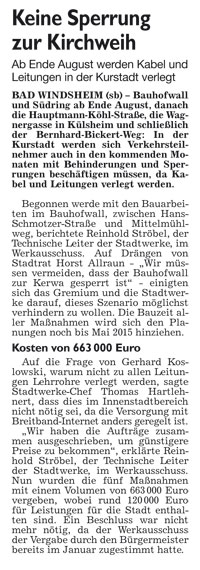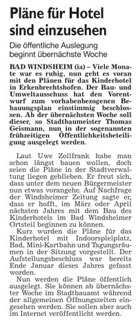 WZ 31. 7. 2014 "Pläne für Hotel sind einzusehen", "Im Oktober soll die Turnhalle saniert sein"