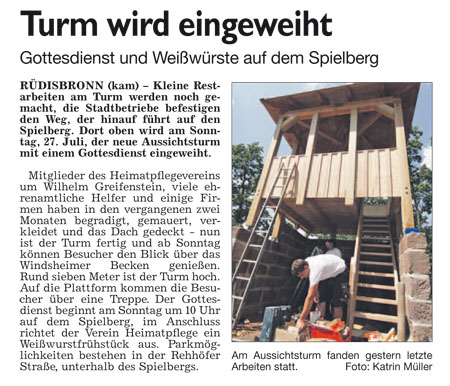 WZ 25. 7. 2014 "Film kehrt zurück an seinen Entstehungsort", "Turm wird eingeweiht", "Kein Stress mit der Hitze", "Mobil sein in den Sommerferien"