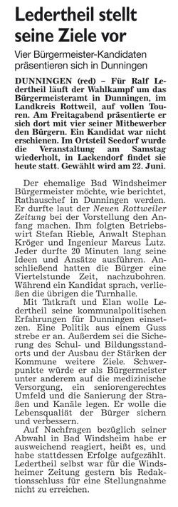 WZ 2. 6. 2014 "Ledertheil stellt seine Ziele vor","Mit Lehrrohren", "Allraun leitet"
