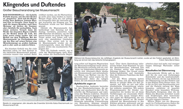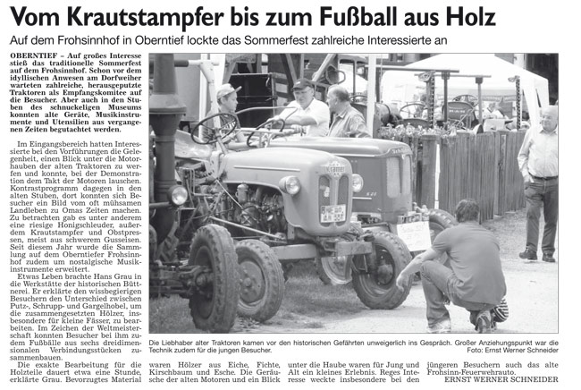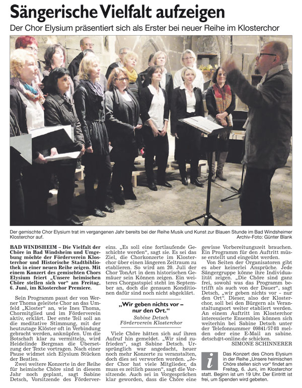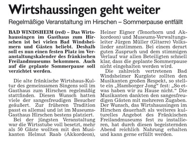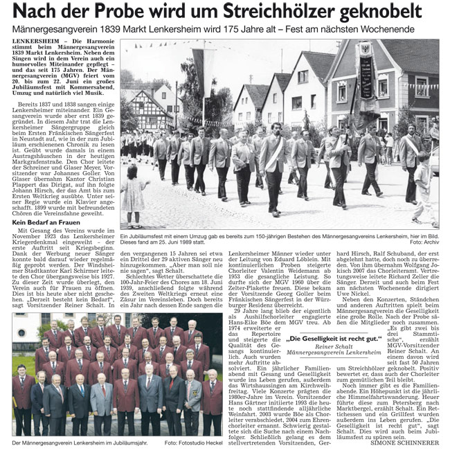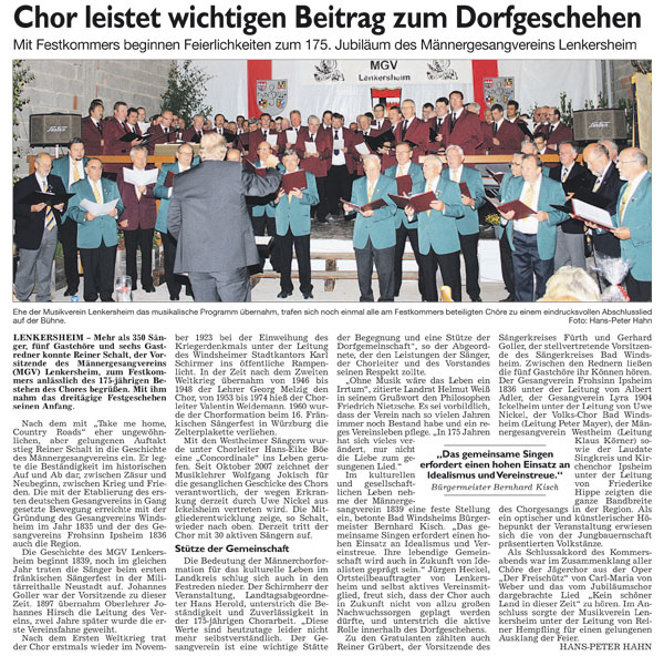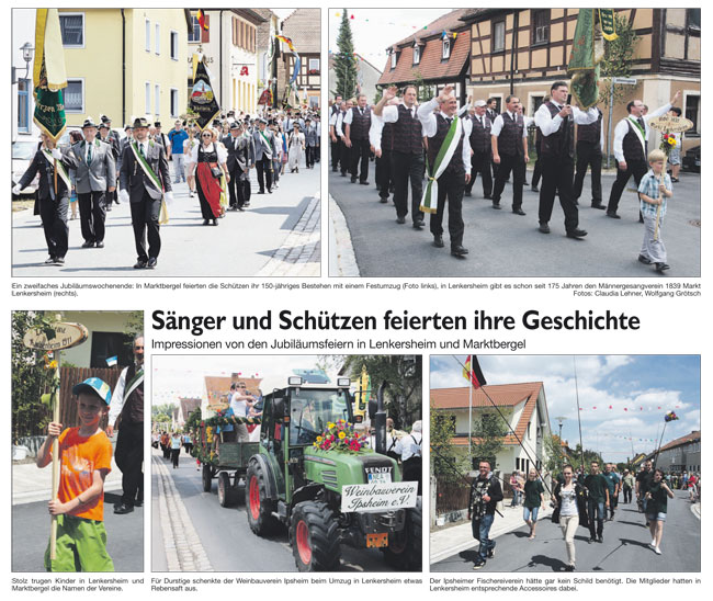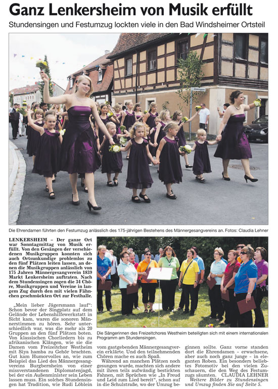 WZ 23. 6. 2014 "Klingendes und Duftendes","Ganz Lenkersheim von Musik erfüllt","Möglichkeiten der Kanalsanierung", "Chor leistet wichtigen Beitrag zum Dorfgeschehen", "Sänger und Schützen feiern ihre Geschichte 1", "Sänger und Schützen feiern ihre Geschichte 2"