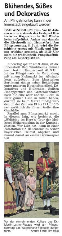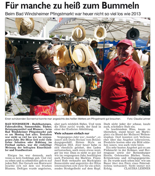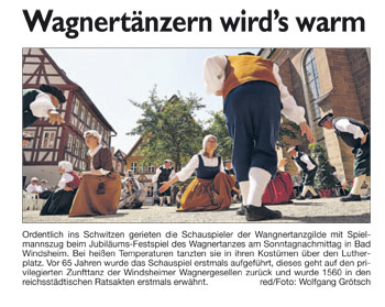 WZ 10. 6. 2014 "Wagnertänzern wird es warm","Für manche zu heiß zum Bummeln"