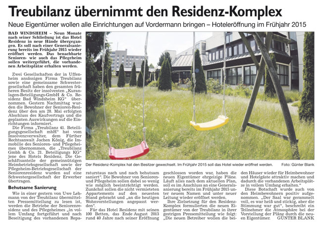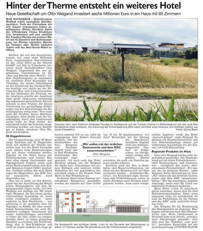WZ 26. 6. 2014 "Einsparungen bei der Erweiterung","Hinter der Therme entsteht ein weiteres Hotel"