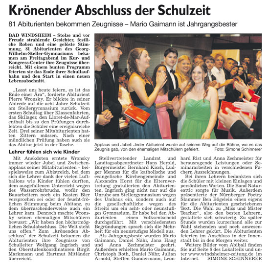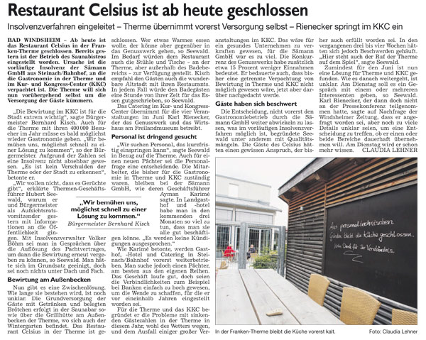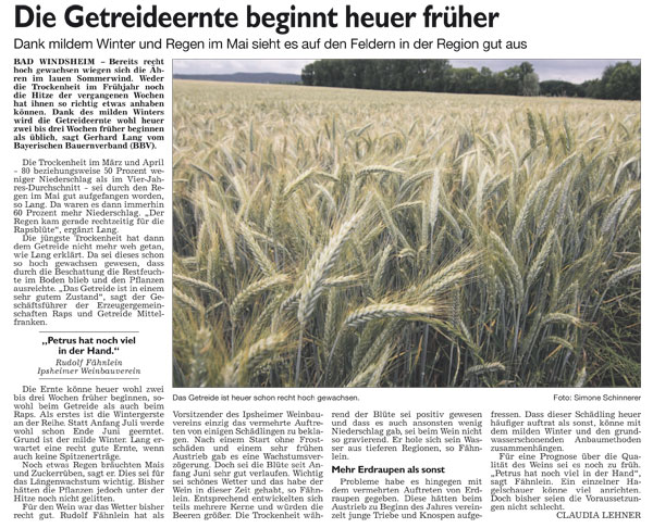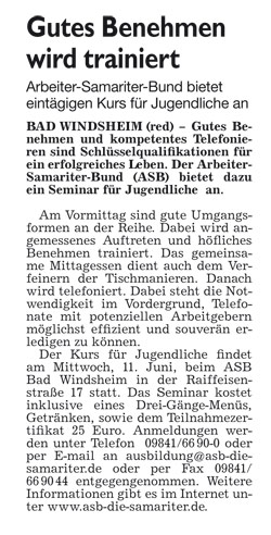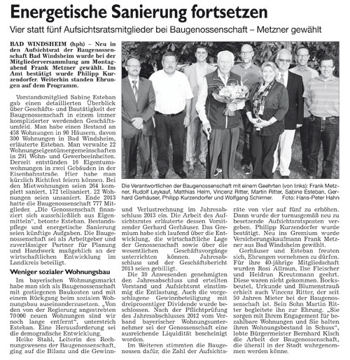 WZ 19. 6. 2014 "Ehrung für wahre Heldinnen der Gesellschaft","Trauer um Claus Hahn","Bad Windsheimer zu Gast in Österreich"