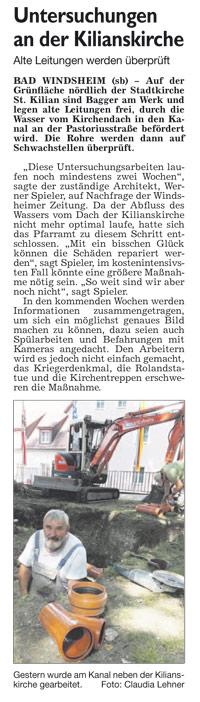 WZ 11. 6. 2014 "Alles bereit für Kicker im Schullandheim","Wasser sprengt die Klötze aus dem Boden", "Untersuchungen an der Kilianskirche"