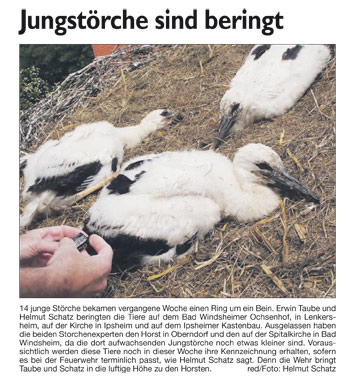 WZ 12. 6. 2014 "Bereit für den Sprung ins nächste Projekt","Möglichkeit zum Abheben", "Jungstörche sind beringt", "Feiern an den Weinbergen bis spät in die Nacht"