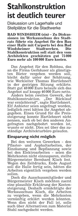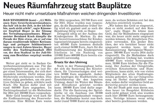 WZ 28. 6. 2014 "Neues Räumfahrzeug statt Bauplätze","Türkenschätzche? Muss das sein?", "Planung für den Markt geht voran"