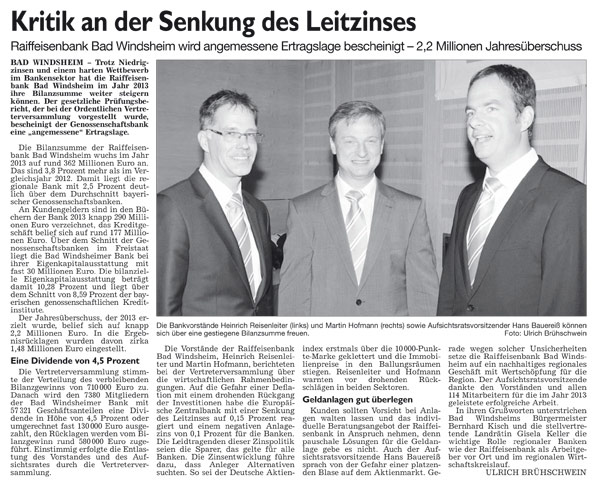 WZ 14. 6. 2014 "Freibadspaß nur zu den gewohnten Zeiten","Kritik an der Senkung des Leitzinses",