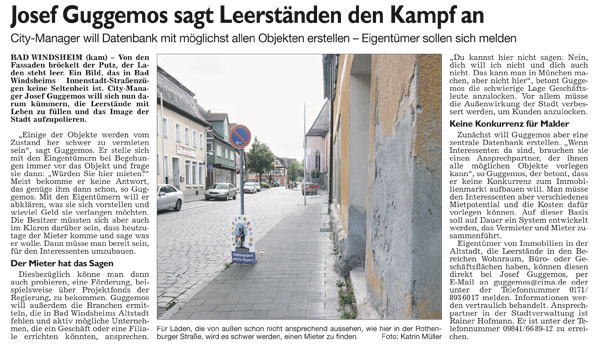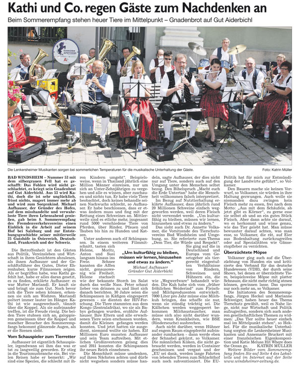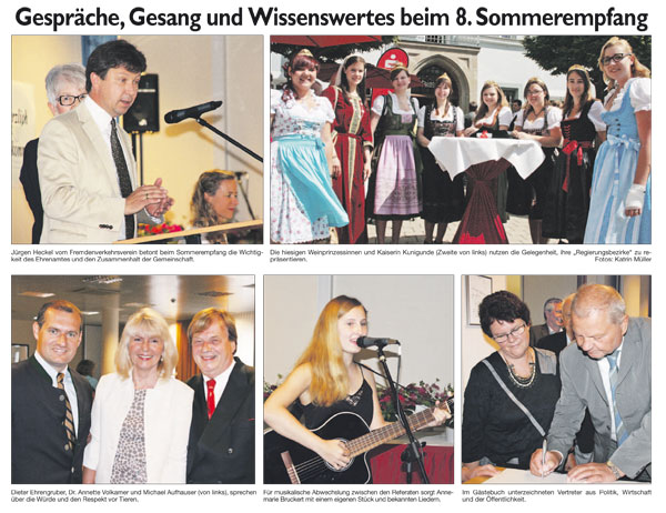 WZ 16. 6. 2014 "Josef Guggemos sagt Leerständen den Kampf an","Kathi und Co. regen Gäste zum Nachdenken an"," Gespräche, Gesang und Wissenswertes beim 8. Sommerempfang"