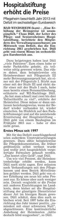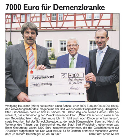 WZ 18. 6. 2014 "7000 Euro für Demenzkranke"
