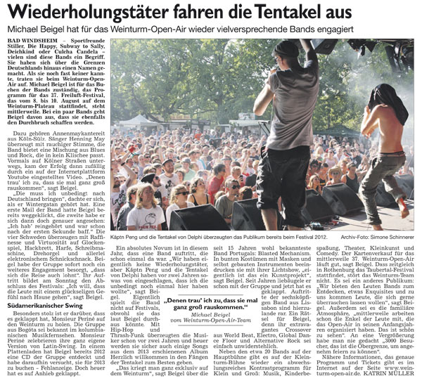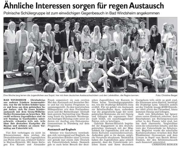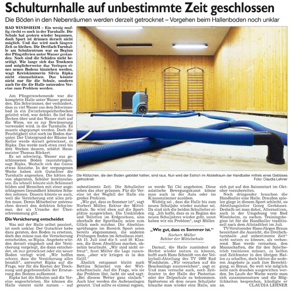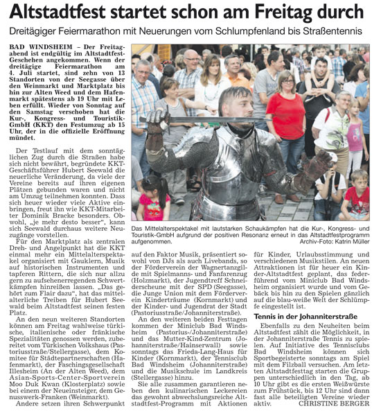 WZ 24. 6. 2014 "Schulturnhalle auf unbestimmte Zeit geschlossen","Altstadtfest startet schom am Freitag durch","Ralf Ledertheil bewirbt sich erneut", "Ähnliche Interessen sorgen für regen Austausch"