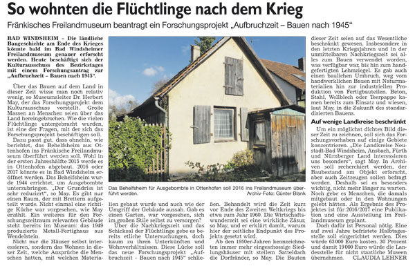WZ 25. 6. 2014 "So wohnten die Flüchtlinge nach dem Krieg","Wohl 150 000 Euro Wasserschaden","Wiederholungstäter fahren die Tentakel aus", "Vom Bierbrauen bis zur Trachtenvorführung", "Energetische Sanierung fortsetzen"