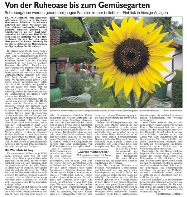 WZ 30. 6. 2014 "Von der Ruheoase bis zum Gemüsegarten","Krönender Abschluss der Schulzeit", "Drei Vs für ein Miteinander der beiden großen Kirchen", "Zahlreiche Besucher strömten durch die hiesigen Schrebergärten"