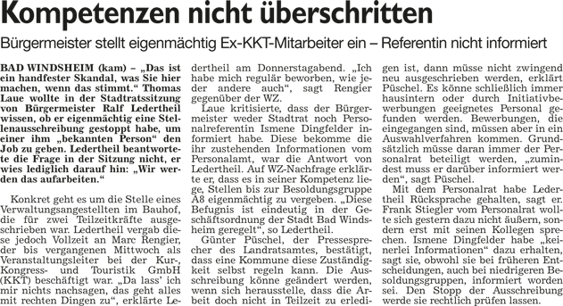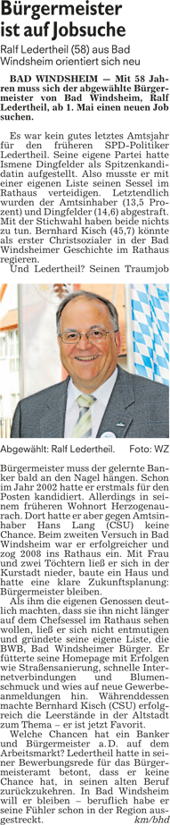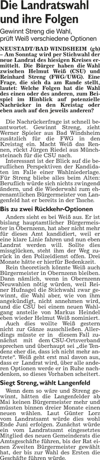 WZ 27. 3. 2014 "Der künftige Bürgermeister kann`s auch ohne Worte", Die Landratswahl und ihre Folgen"
