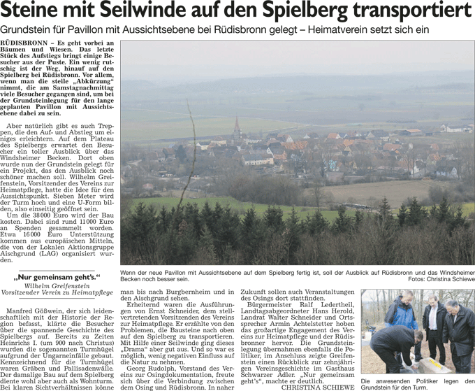 WZ 3. 3. 2014 "Steine mit Seilwinde auf den Spielberg transportiert", "Beton statt Schotter", "Disco in der Scheune"