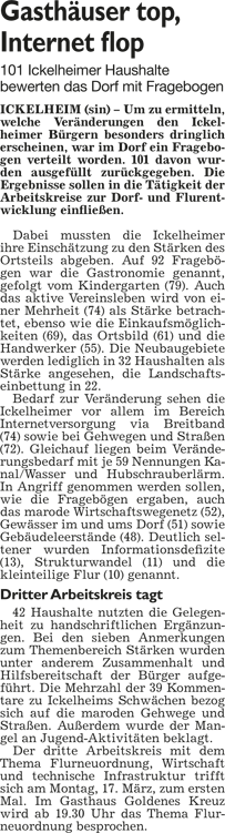 WZ 5. 3. 2014 "Kontakte in die Ortsteile", "Biogasanlage entdecken", "Briefwahl gefragt wie nie", "Gasthäuser top, Internet flop"