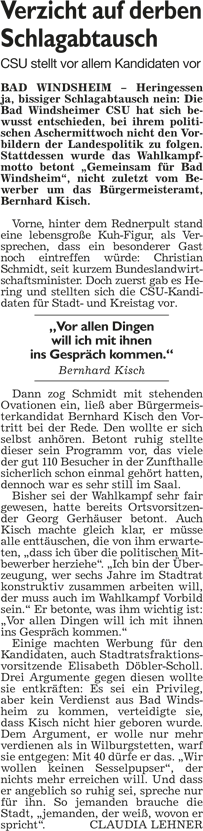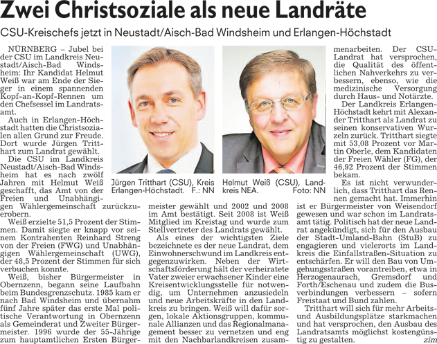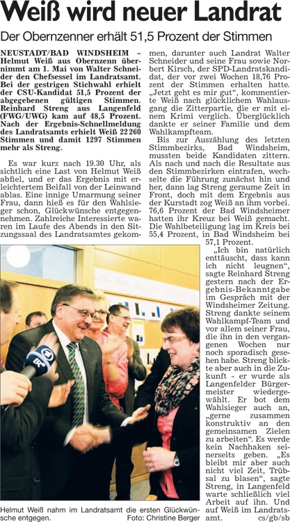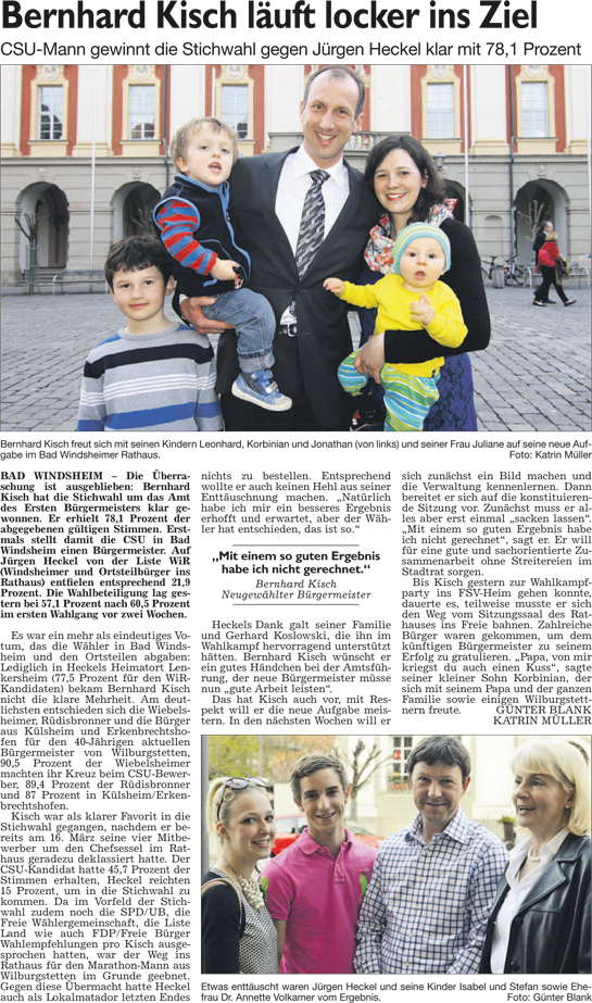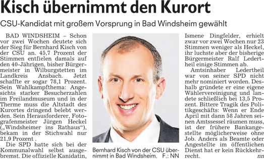 WZ 31. 3. 2014 "Bernhard Kisch läuft locker ins Ziel", "Kisch übernimmt den Kurort", "Weiß wird neuer Landrat", "Zwei Christsoziale als neue Landräte"