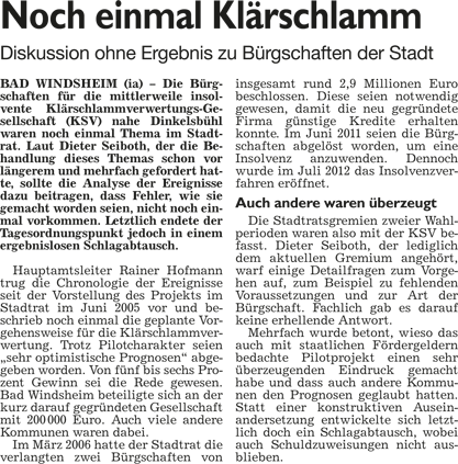 WZ 19. 3. 2014 "Kommunalwahl 2014 mit Stadtrats- und Bürgermeisterwahlergebnisse", "Windsheims Wähler zeigen klare Kante", "Bürgermeister ist auf Jobsuche", "Klärschlamm und neue Gewerbe", "Erkundungen mit dem Rad"