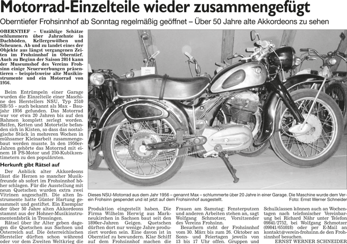 WZ 28. 3. 2014 "Massenbewegung für Beachclub", "Motorrad-Einzelteile wieder zusammengefügt"
