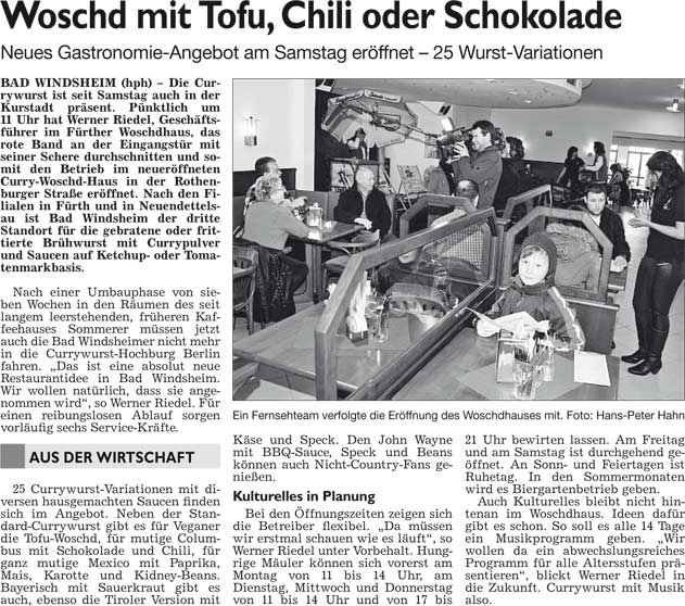 WZ 2. 3. 2015 "Woschd mit Tofu, Chili oder Schokolade", "Sportliche Jungbauern mit neuer Führung", "Weitgehende Zustimmung zu Schwerpunkten des Etats", "Kurbeitrag auf zwei Euro aufgerundet", "Vom Draht zum Schmuck", "Räte tasten sich bei Modell vorwärts"
