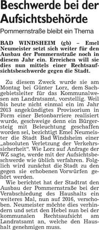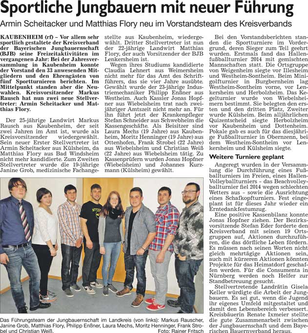 WZ 16. 3. 2015 "Kritik an Beschluss zum Bauhofwall", "Lenkersheimer Jungbauern werden 50", "Werben mit dem Gelbworschd-Lied", "Auf das Verlosungs-Jahr folgt die Kunigunden-Suche"