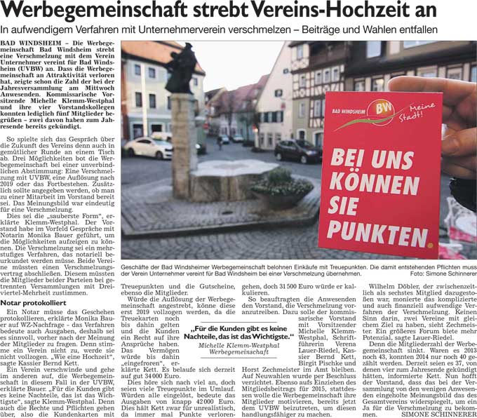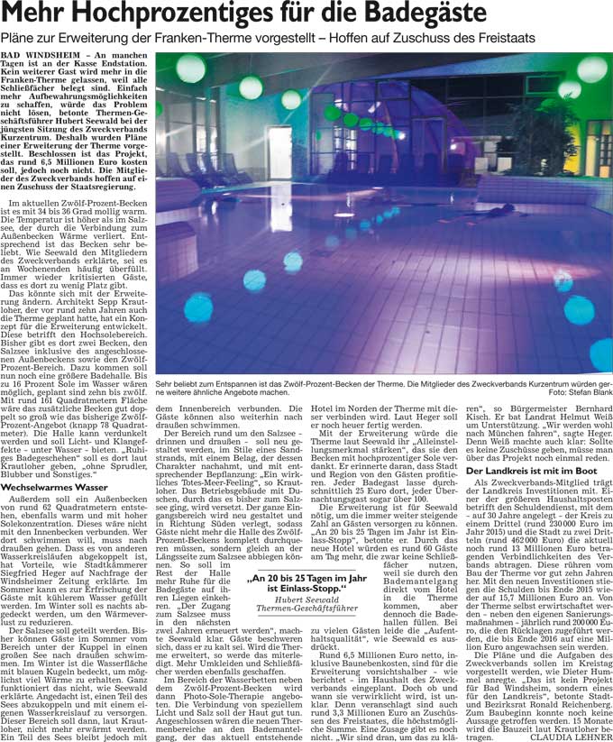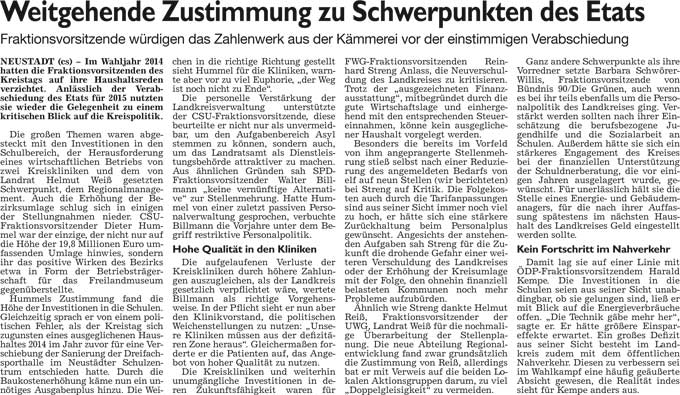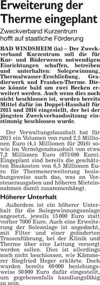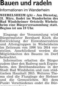 WZ 14./15. 3. 2015 "Das Heilbad zündet die nächste Entwicklungsstufe", "Dorfleben aktiv mitgestaltet", "Draufzahlgeschäft trotz regen Zuspruchs", "Koffer zählt auch Fußgänger"