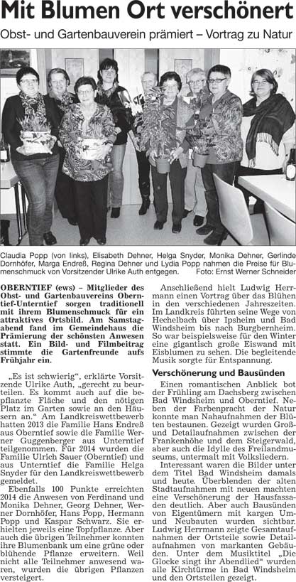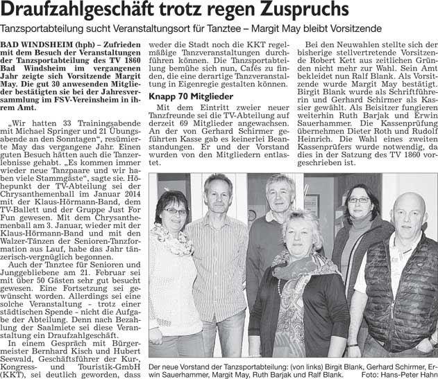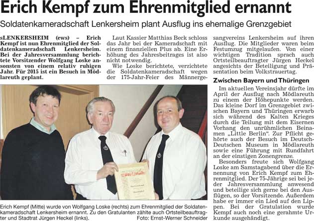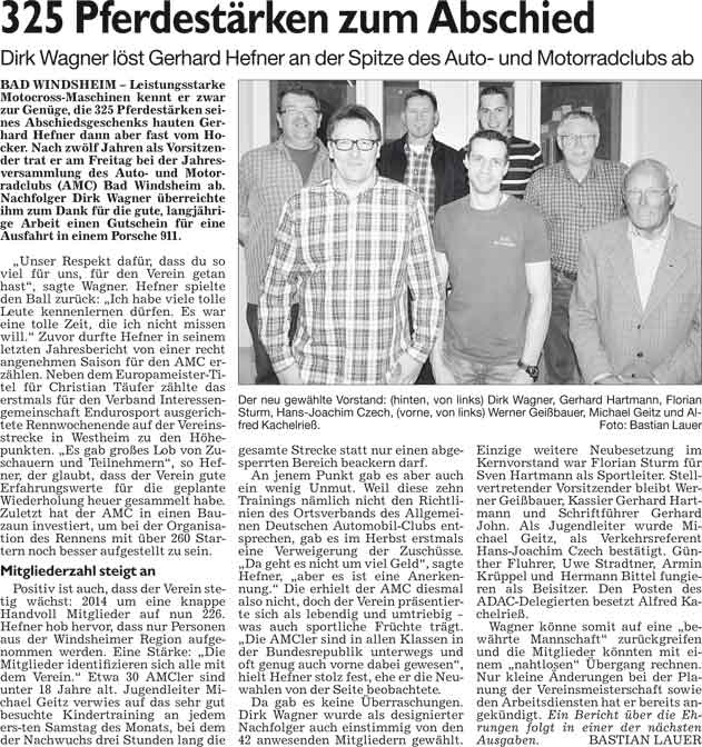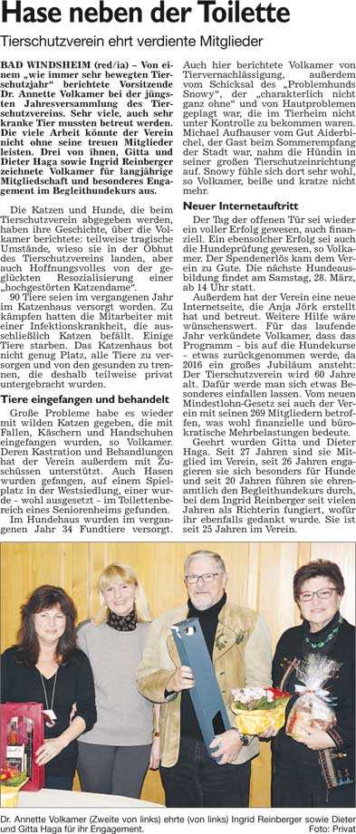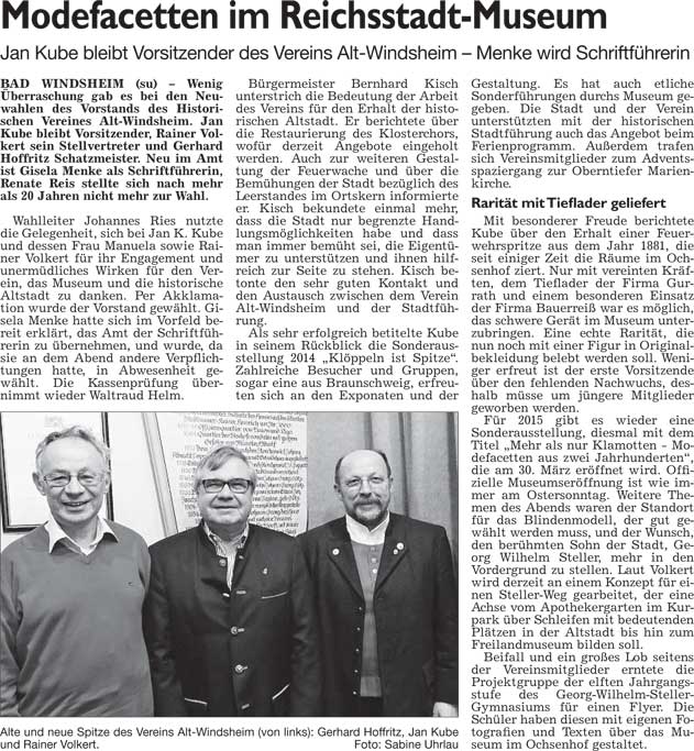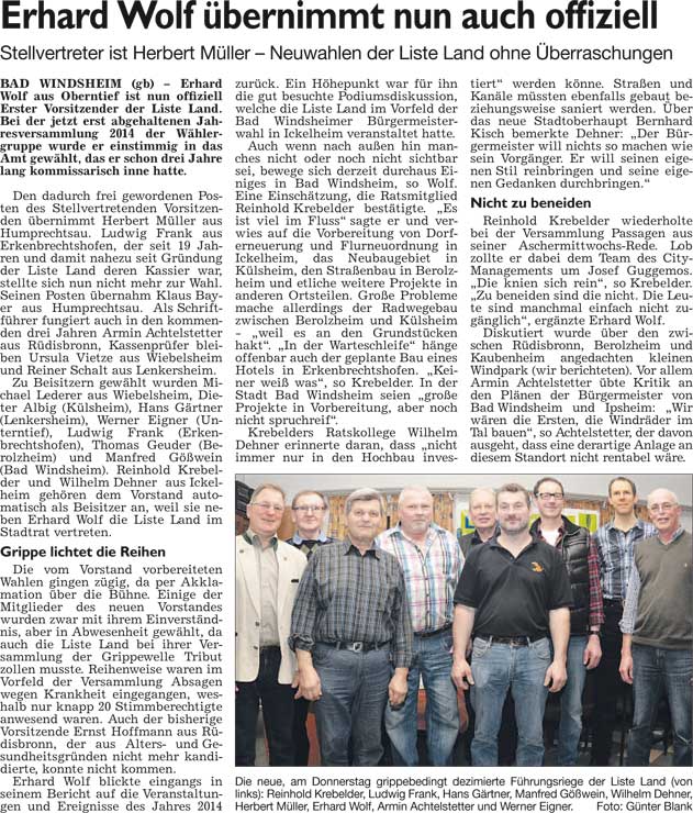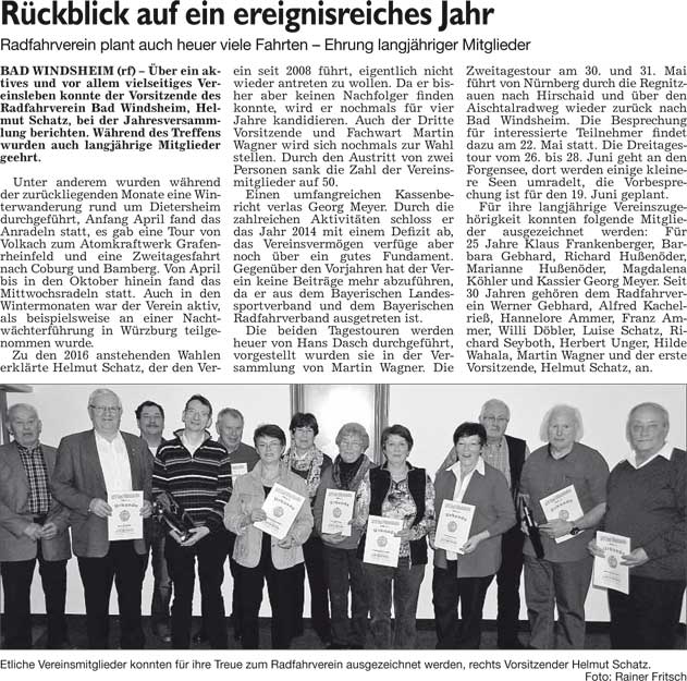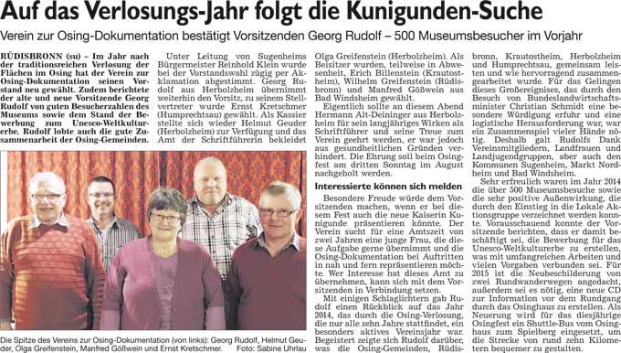WZ 9. 3. 2015 "Durchs Wolkenkuckucksheim", "In liebevoller Erinnerung an einen Verstorbenen", "Tatkräftige Gruppe", "Leistungsschau mit ein bisschen Volksfeststimmung", "Rückblick auf ein ereignisreiches Jahr"