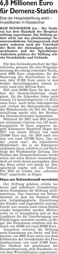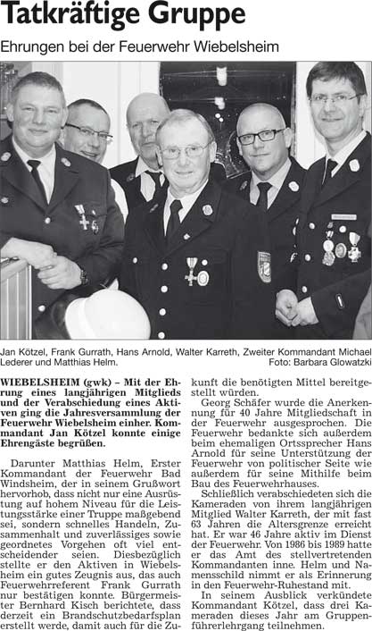 WZ 4. 3. 2015 "Aufstiegsfreuden und langjährige Treue", "Eintracht über sechs Jahrzehnte", "6,8 Millionen Euro für Demenz-Station", "Der Bauhofwall", "Bäume fällen und Ketten wechseln im Akkord", "Graben an der Wasserleitung"