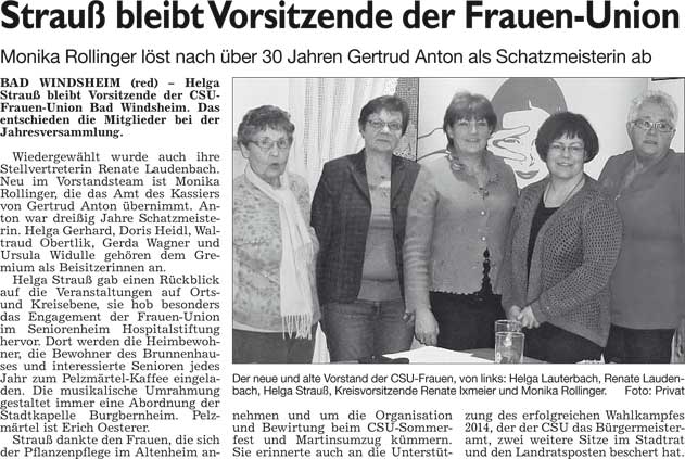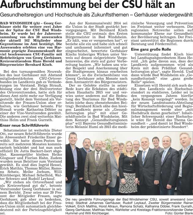 WZ 5. 3. 2015 "Strauß bleibt Vorsitzende der Frauen-Union", "Dank Glasfaser schneller im Internet unterwegs", "Black Hawks in Illesheim"