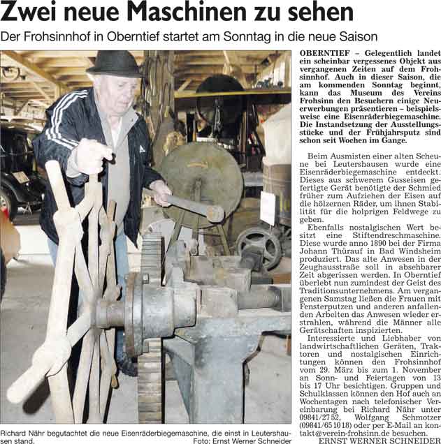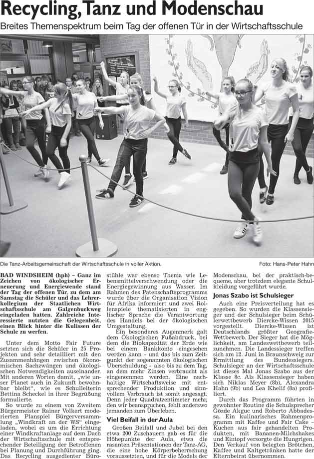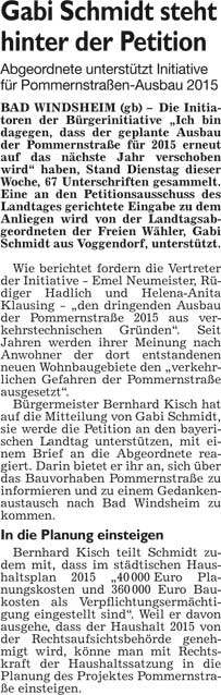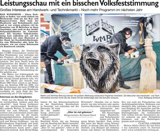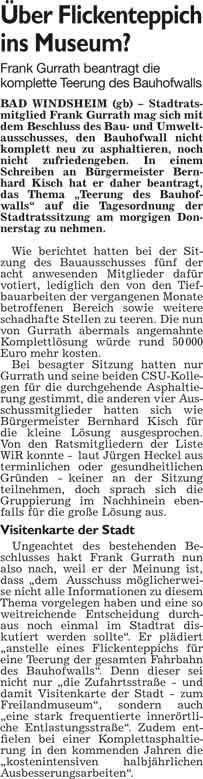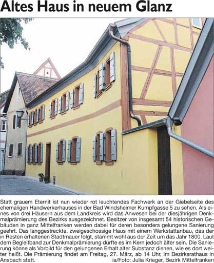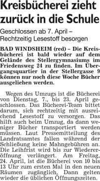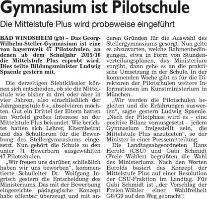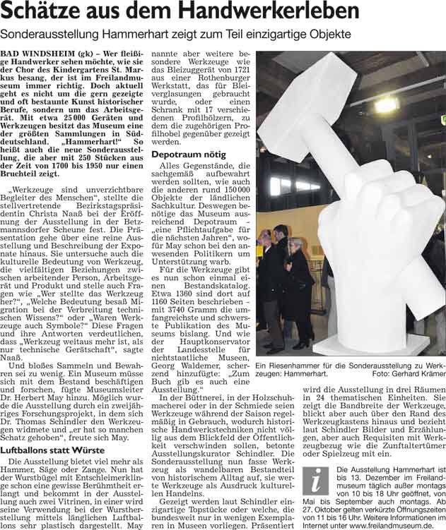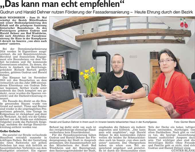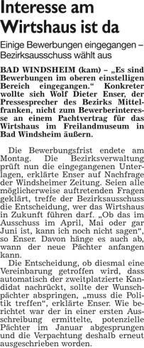 WZ 6. 3. 2015 "Der Bauhofwall ist ab Montag wieder gesperrt", "Wo der Büttner einst lebte und arbeitete", "Freilandmuseum Bad Windsheim ist wieder Filmkulisse", "Freilandmuseum wird zur Filmkulisse", "Wieder ein Schuljahr mehr?", "Ausbildung und Sicherheit im Fokus", "Gabi Schmidt steht hinter der Petition", "Hammerhartes" im Freilandmuseum", "Wiebelsheimer Segelflugzeuge sind bereit zum Abheben"