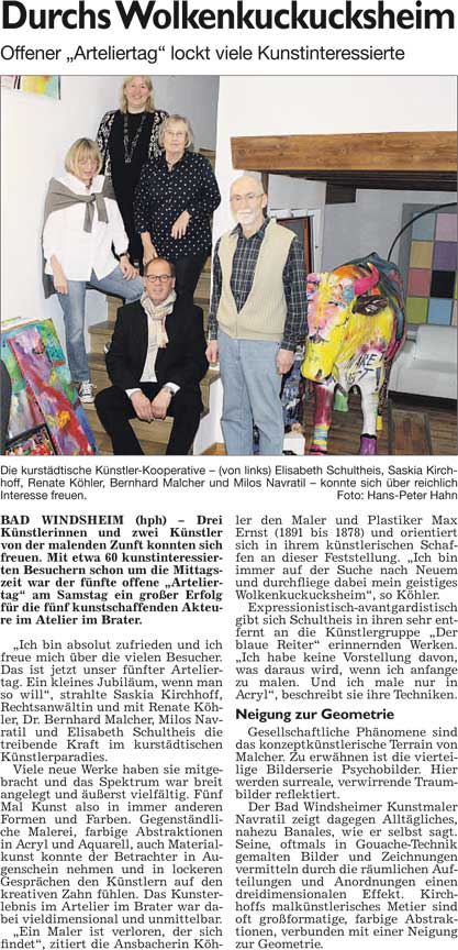 WZ 17. 3. 2015 "Künstlerisch trifft kulinarisch", "Hase neben der Toilette", "Braun führt weiter dezimierten Turnverein"