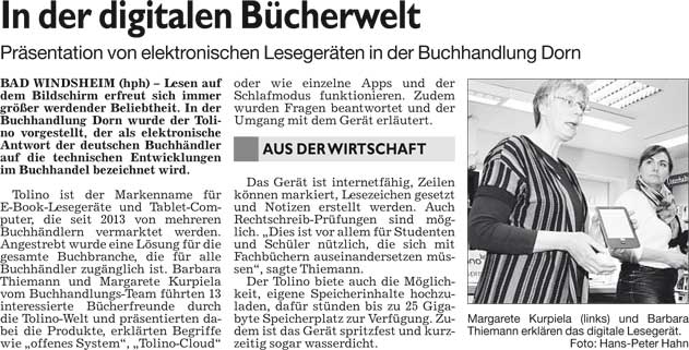 WZ 10. 3. 2015 "In der digitalen Bücherwelt", "Erich Kempf zum Ehrenmitglied ernannt", "An der Spitze der Geflügelzüchter", "Hellere Lampen für das Schulzentrum", "Anerkennung für die Mahnung zum Frieden", "Bad Windsheim mit den Händen erkunden", "Theater auf der Leinwand"