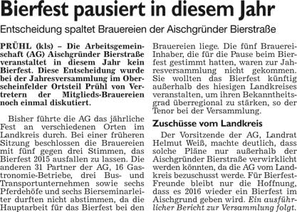 WZ 13. 3. 2015 "Bierfest pausiert in diesem Jahr", "Prüfer haben nichts zu meckern", "Kriegszeit wird im Freilandmuseum zum Thema", "Gymnasium ist Pilotschule"