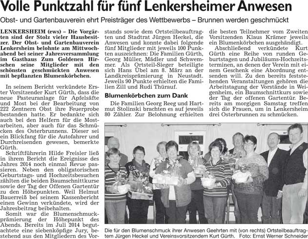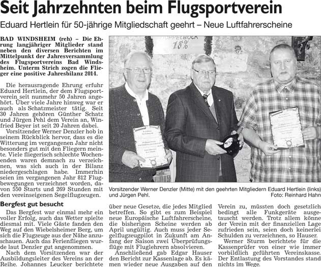 WZ 20. 3. 2015 "Seit Jahrzehnten beim Flugsportverein", "Volle Punktzahl für fünf Lenkersheimer Anwesen", "Stadt fragt Meinungsbild ab", "Hoffnung auf gemeinsamen Neuanfang", "Werbegemeinschaft strebt Vereins-Hochzeit an"