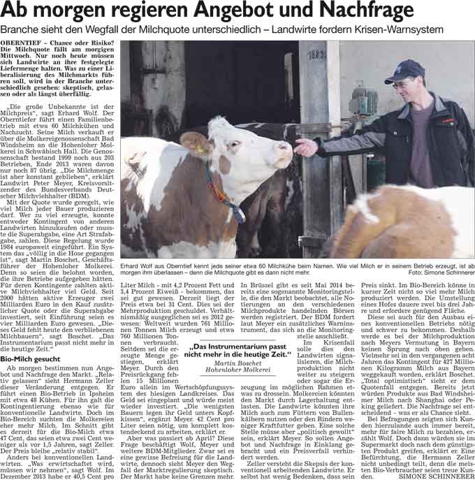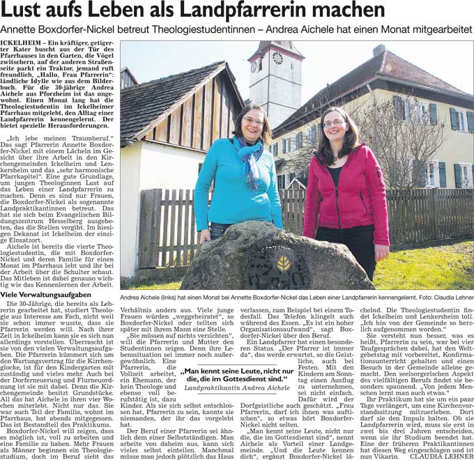 WZ 21./22. 3 2015 "Lust aufs Leben als Landpfarrerin machen", "Erhard Wolf übernimmt nun auch offiziell", "Kritik am Umgang mit den Pächtern"