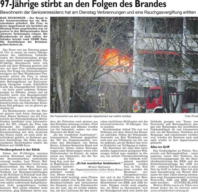 WZ 26. 3.2015 "97-jährige stirbt an den Folgen des Brandes", "Alte Technik lebt wieder auf", "Leistungsfähiger Wasserversorger in der Region", "Mehr als ein Handelsvertrag"