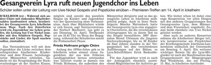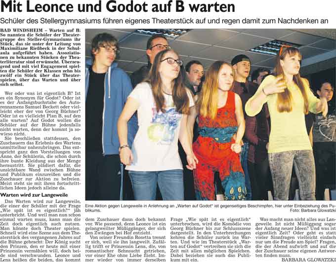 WZ 28./29. 3. 2015 "Neues Schmuckstück statt alter Bauruine", "Gesangverein Lyra ruft neuen Jugendchor ins Leben", "Mit Leonce und Godot auf B warten"