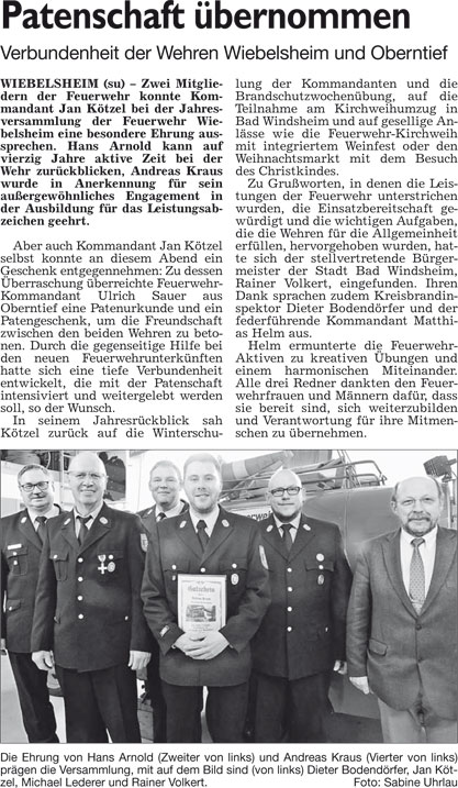 WZ 1. 3. 2016 "Patenschaft übernommen"