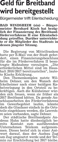 WZ 3. 3. 2016 "Geld für Breitband wird bereit gestellt", "Gutes aus Bad Windsheim als eigenständige Marke", "Wurzeln bereiten Verdruss"