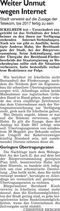 WZ 4. 3. 2016 "Weiter Unmut wegen Internet"