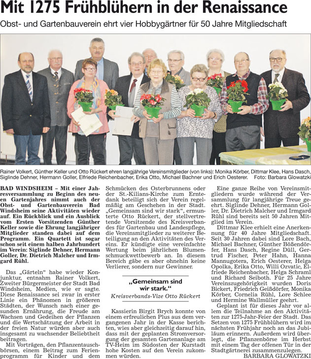 WZ 7. 3. 2016 "Familienverband existiert nicht mehr", "Mit 1275 Frühblühern in die Renaissance"