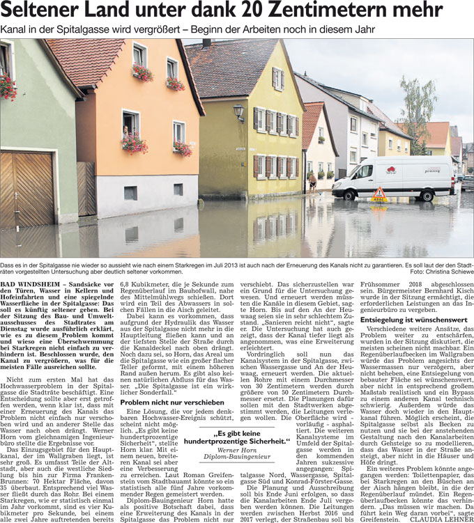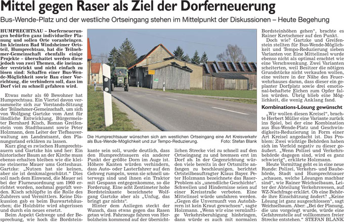 WZ 11. 3. 2016 "Neues Gehirn fürs Abwasser-Herzstück", "Mittel gegen Raser als Ziel der Dorferneuerung"