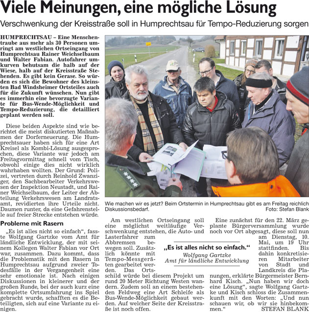 WZ 12./13. 3. 2016 "Staatsstraße bleibt als Wirtschaftsweg", "Einschätzungen gehen weit auseinander", "Viele Meinungen, ein mögliche Lösung"
