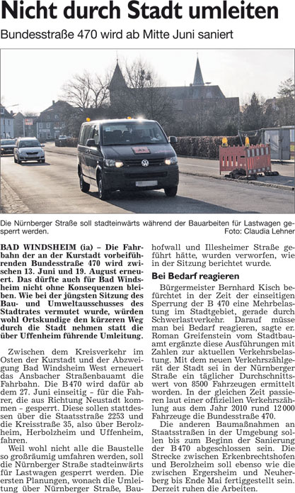WZ 15. 3. 2016 "Nicht durch Stadt umleiten"
