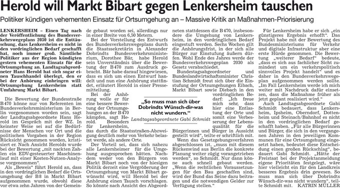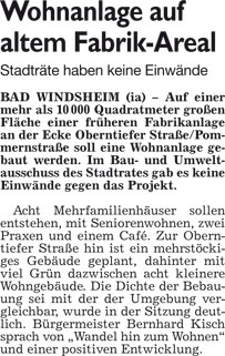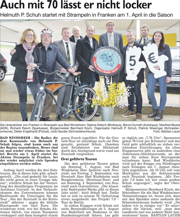 WZ 18. 3. 2016 "Herold will Markt Bibart gegen Lenkersheim tauschen ", "Auch mit 70 lässt er nicht locker", "Wohnanlage auf altem Fabrik-Areal"