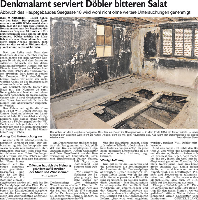 WZ 24./25. 3. 2016 "Haus ist von erheblicher Bedeutung für das Esemble", "Hilfe beim Mathe lernen"