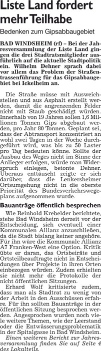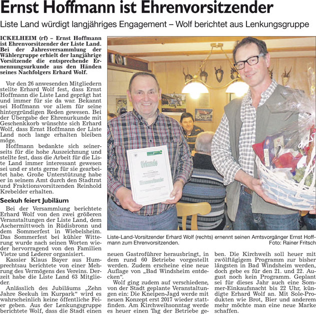 WZ 10. 3. 2016 "Ickelheim springt auf den Zug mit auf", "Seltener Land unter dank 20 Zentimetern mehr"