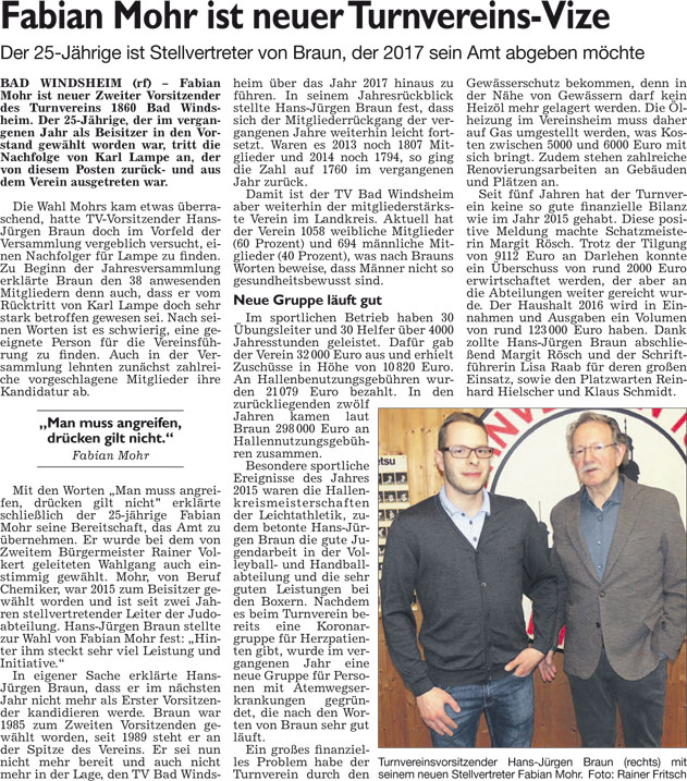 WZ 9. 3. 2016 "Mehr Geld für Barrierefreiheit", "Hans Thürauf ist nun Ehrenvorsitzender"