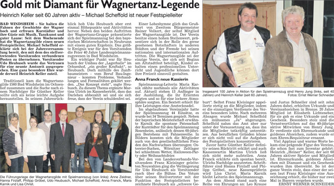 WZ 22. 3. 2016 "Gold mit Diamant für Wagnertanz-Legende", "Lob für gute Jugendarbeit"