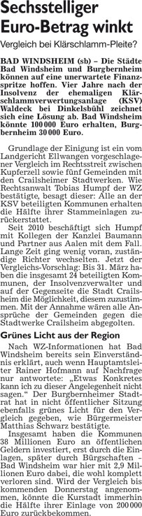 WZ 26.-28. 3. 2016 "Vorstand setzt die Arbeit fort", "Sechstelliger Euro-Betrag winkt"